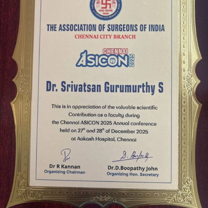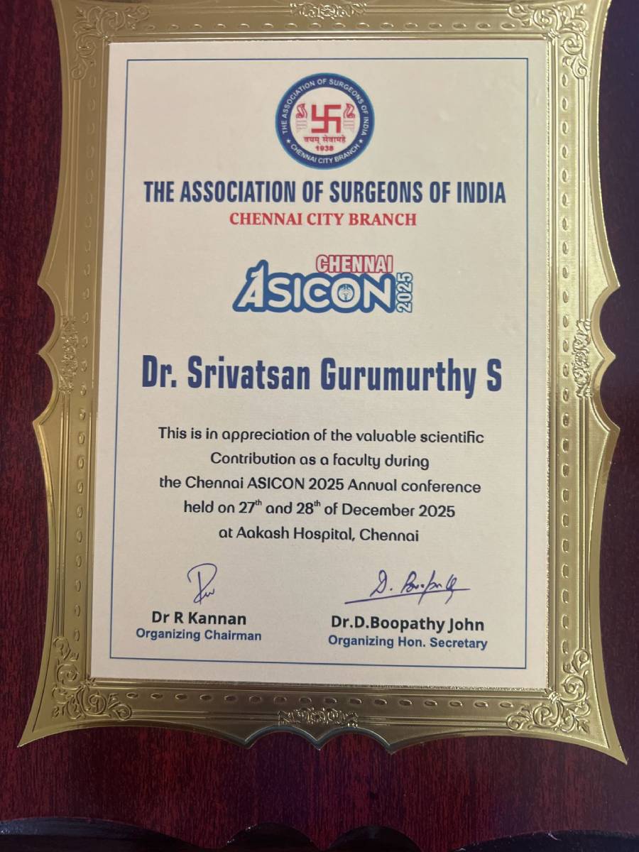 Dr. S. Srivatsan Gurumurthy is a Robotic and Laparoscopic Surgeon in Chennai and a Hernia Expert at the Division of HPB, Minimal Access Surgery & Liver Transplantation, GEM Hospital, Chennai.